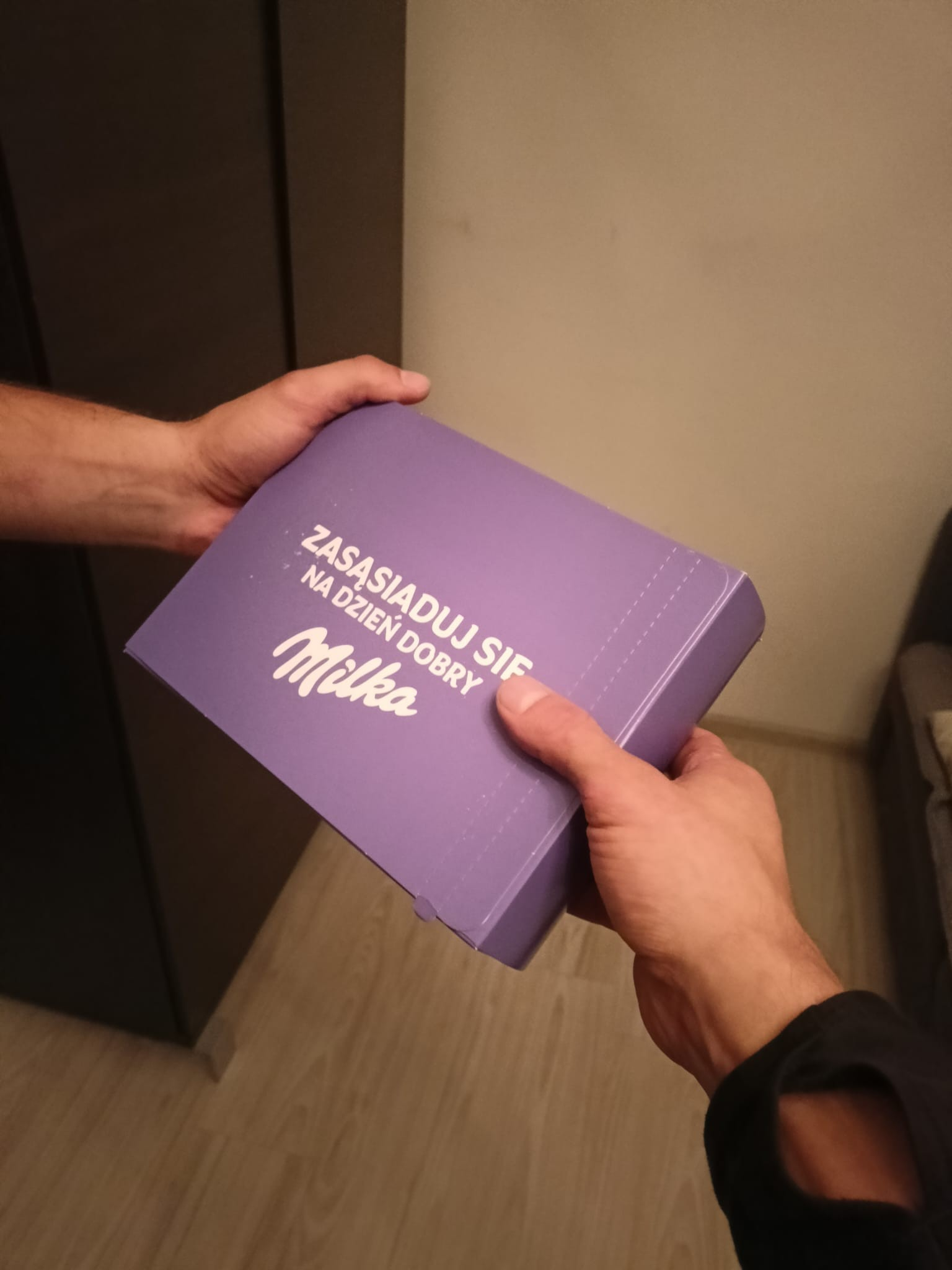 Po zakończonej przeprowadzce nasi klienci otrzymują pakiet sąsiedzki od Milka – słodki upominek, który pomaga zasąsiadować się w nowym miejscu.